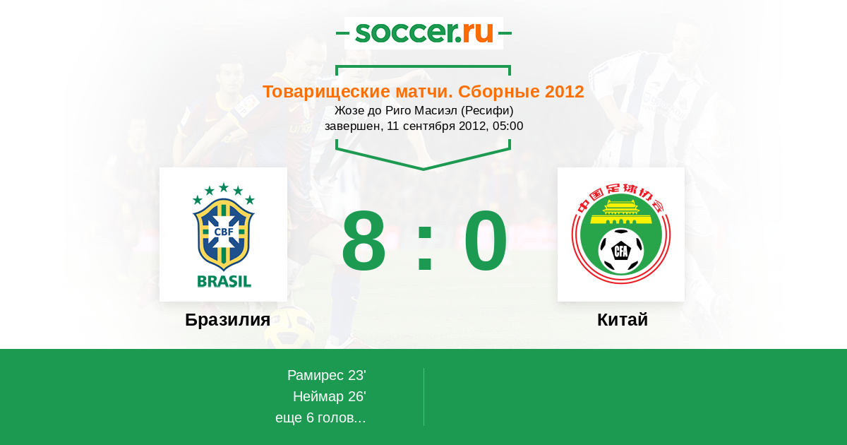 Протокол матча Бразилия против Китай