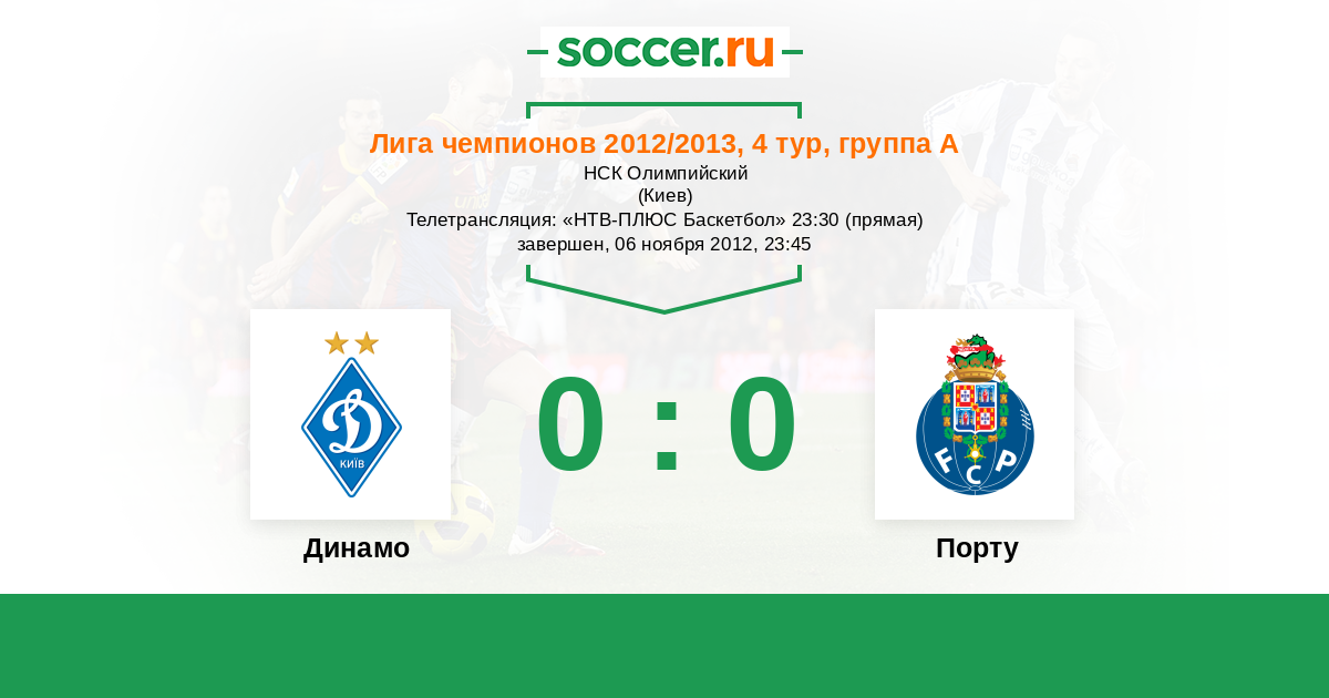 Протокол матча Динамо против Порту