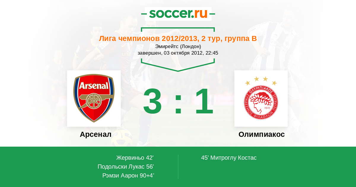 42' (1:0) Жервиньо (27) (Артета Микель (8))