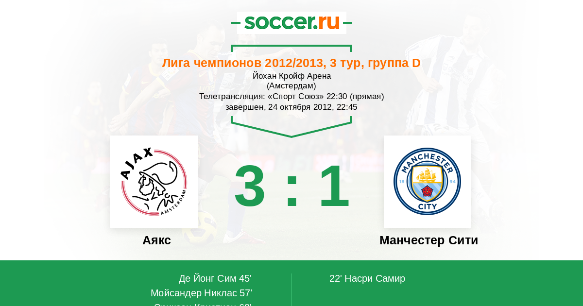 22' (0:1) Насри Самир (8) (Милнер Джеймс (7))