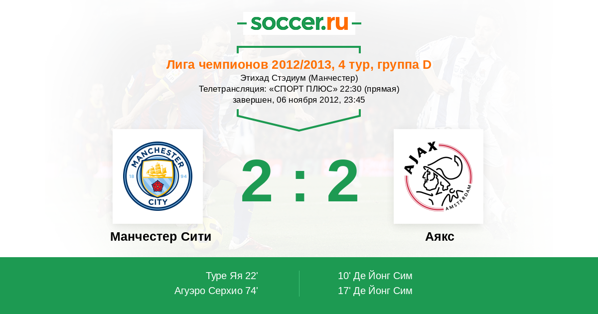 Протокол матча Манчестер Сити против Аякс
