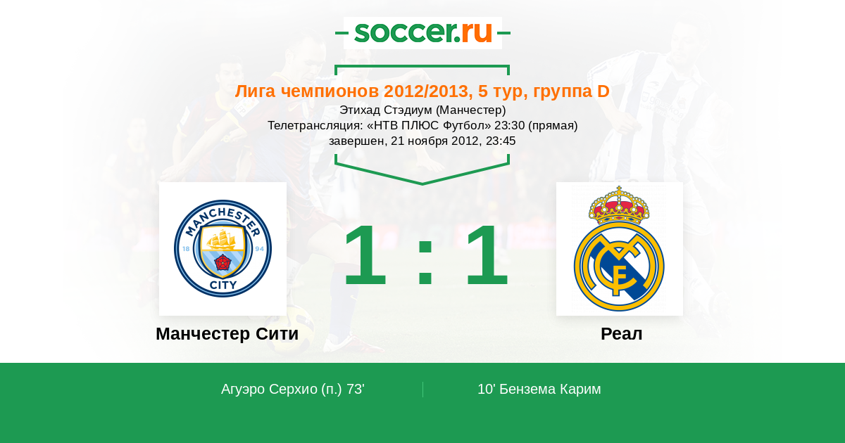Протокол матча Манчестер Сити против Реал