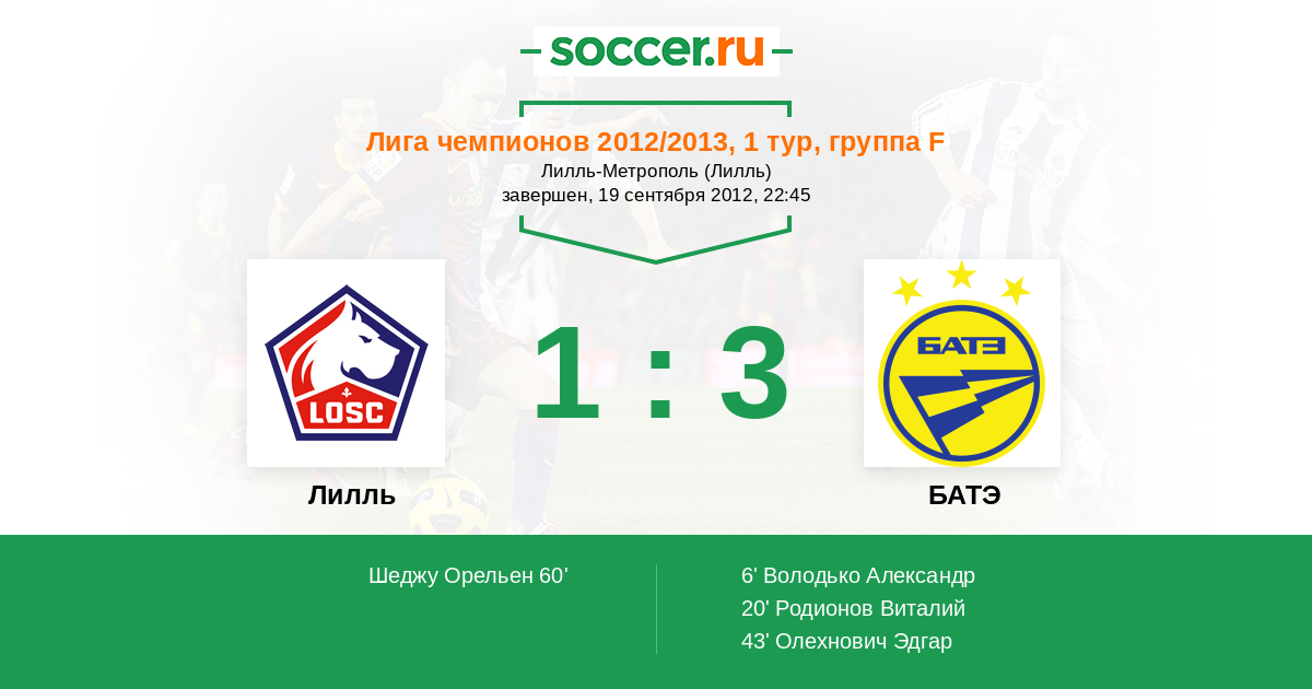 Протокол матча Лилль против БАТЭ