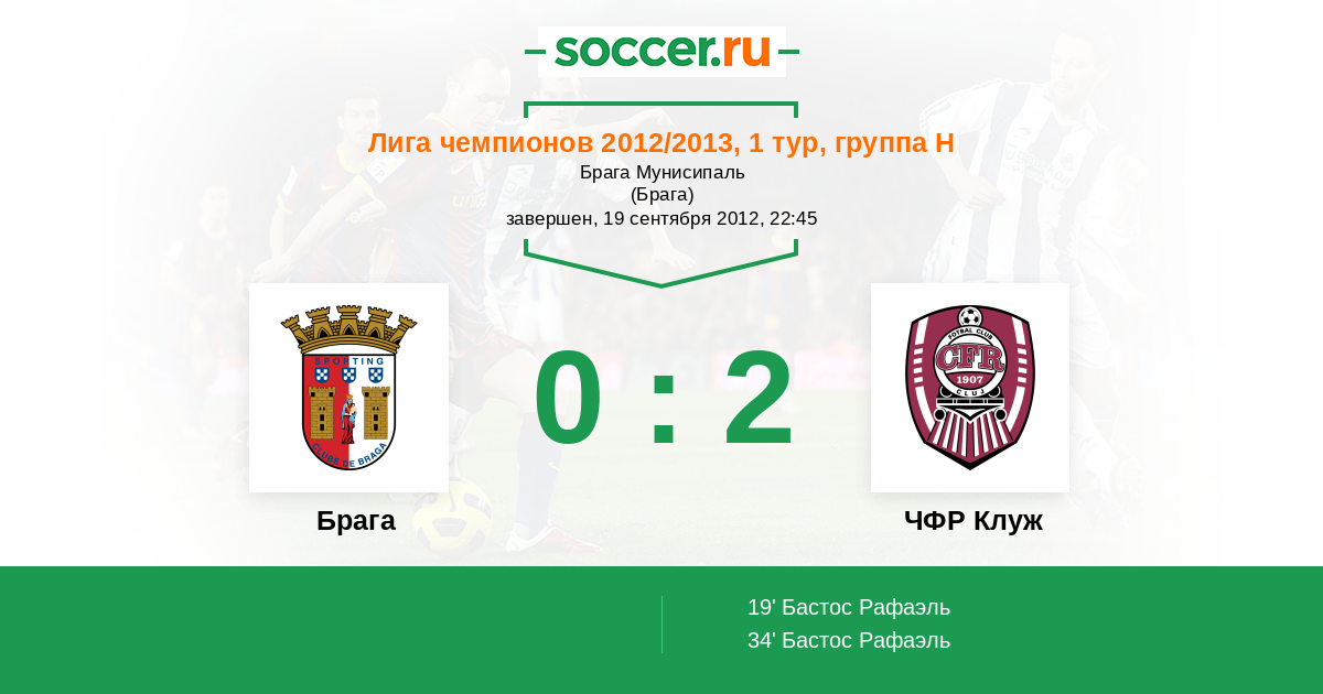Протокол матча Брага против ЧФР Клуж
