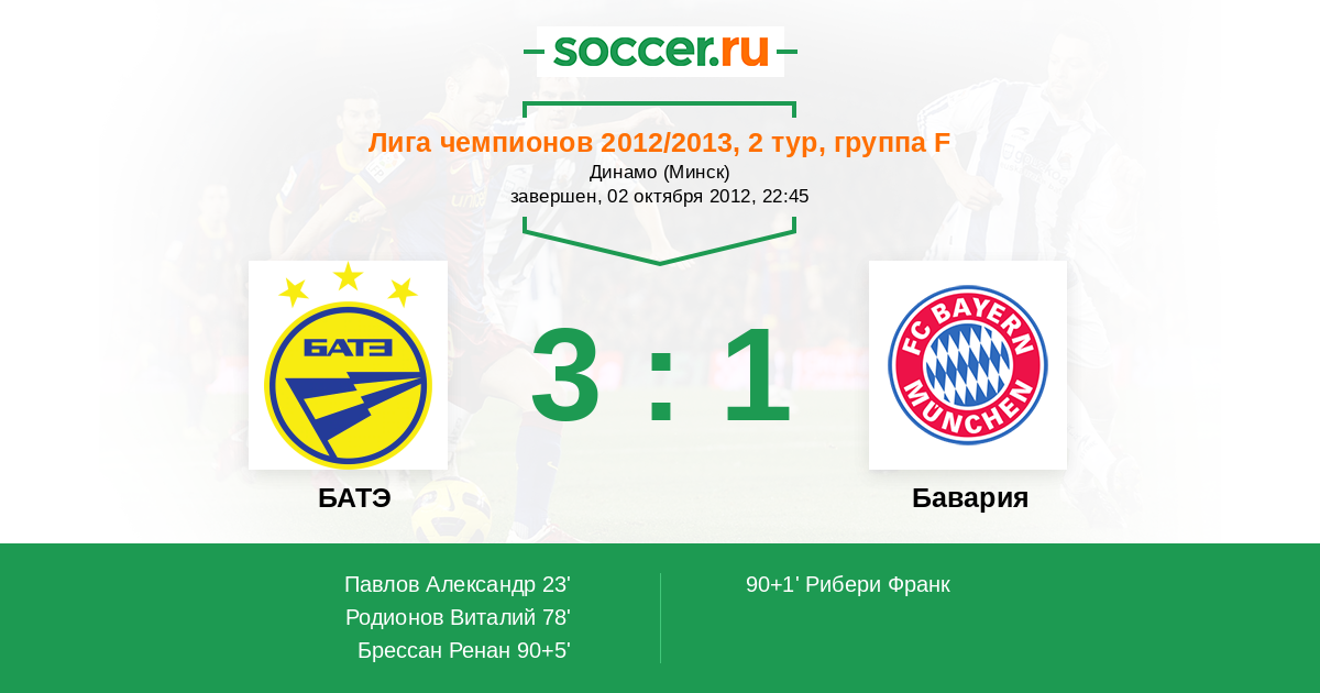 Протокол матча БАТЭ против Бавария