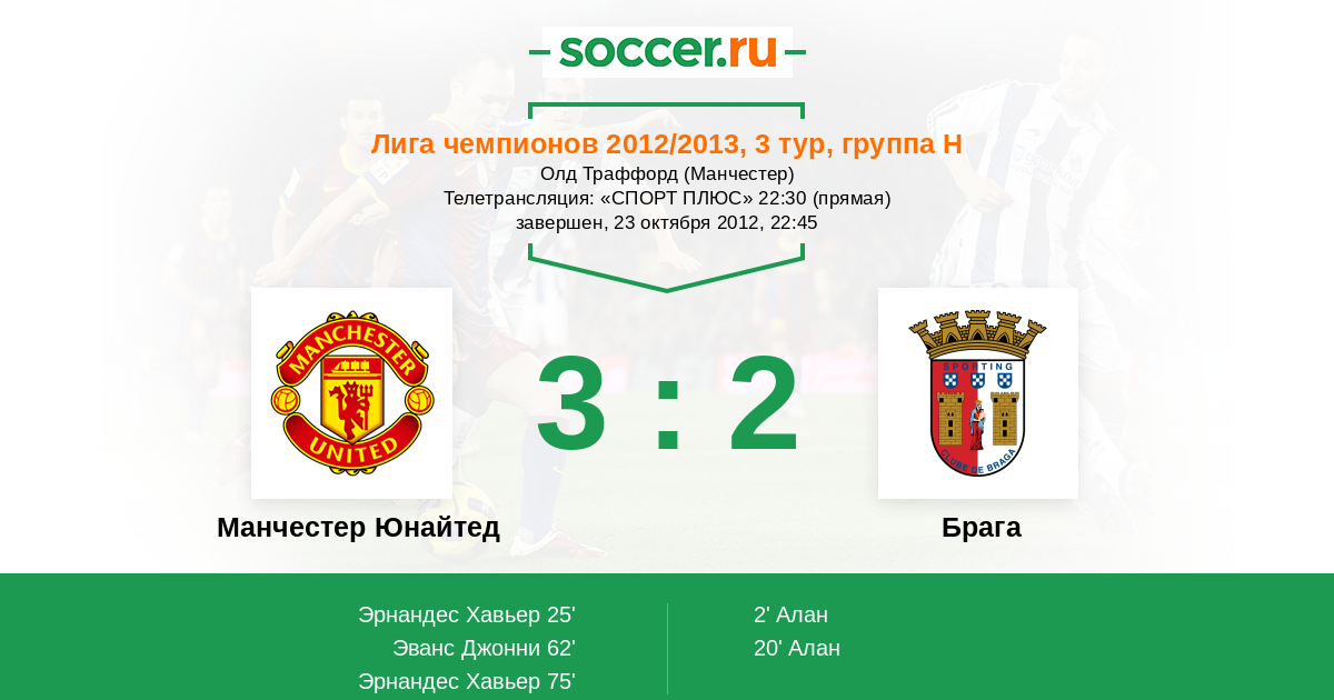 Протокол матча Манчестер Юнайтед против Брага