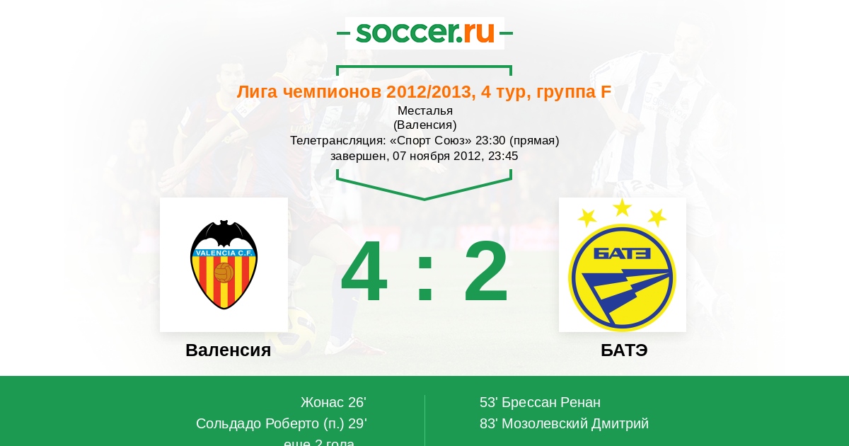 Протокол матча Валенсия против БАТЭ