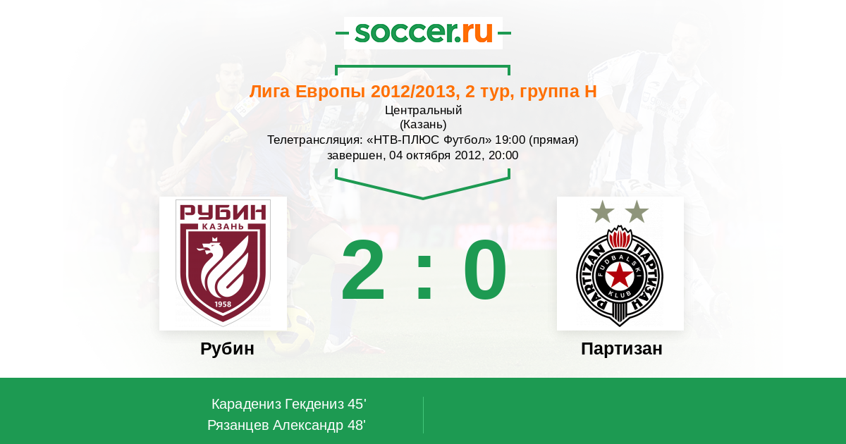 Протокол матча Рубин против Партизан