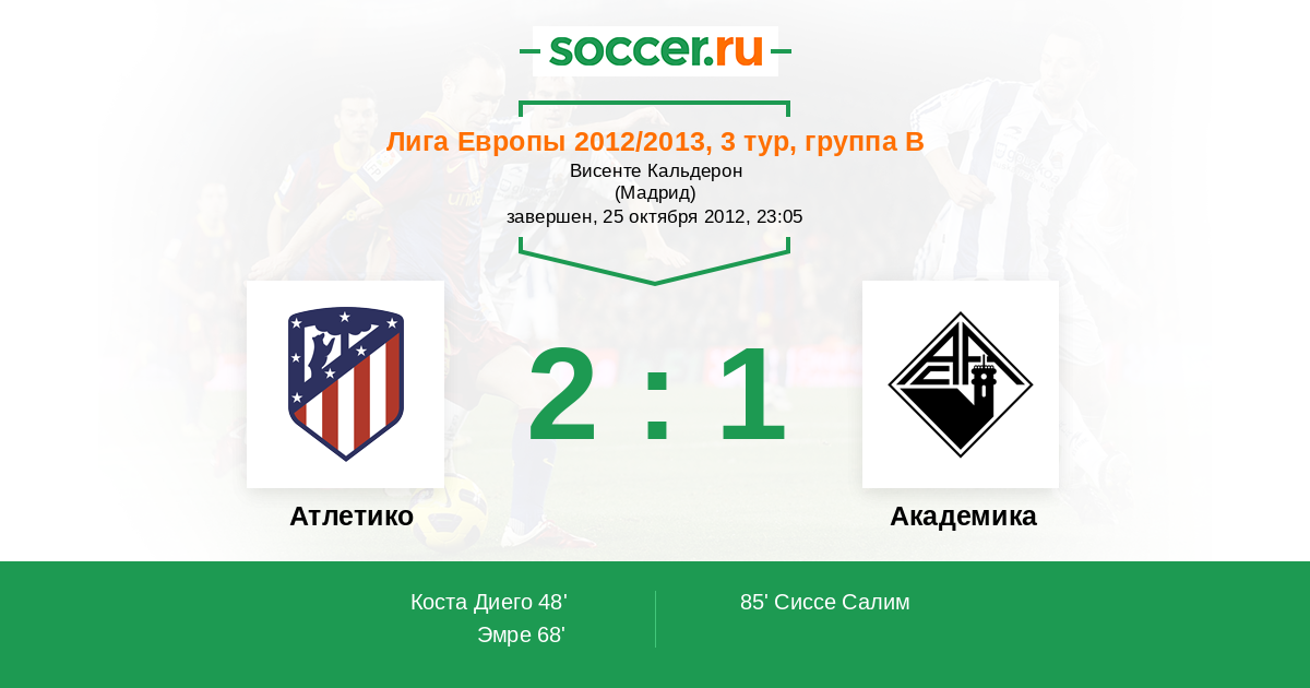 Протокол матча Атлетико против Академика