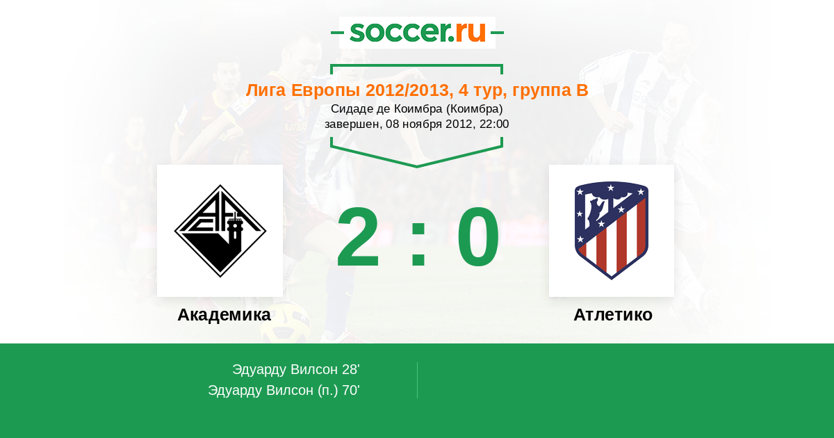 Протокол матча Академика против Атлетико