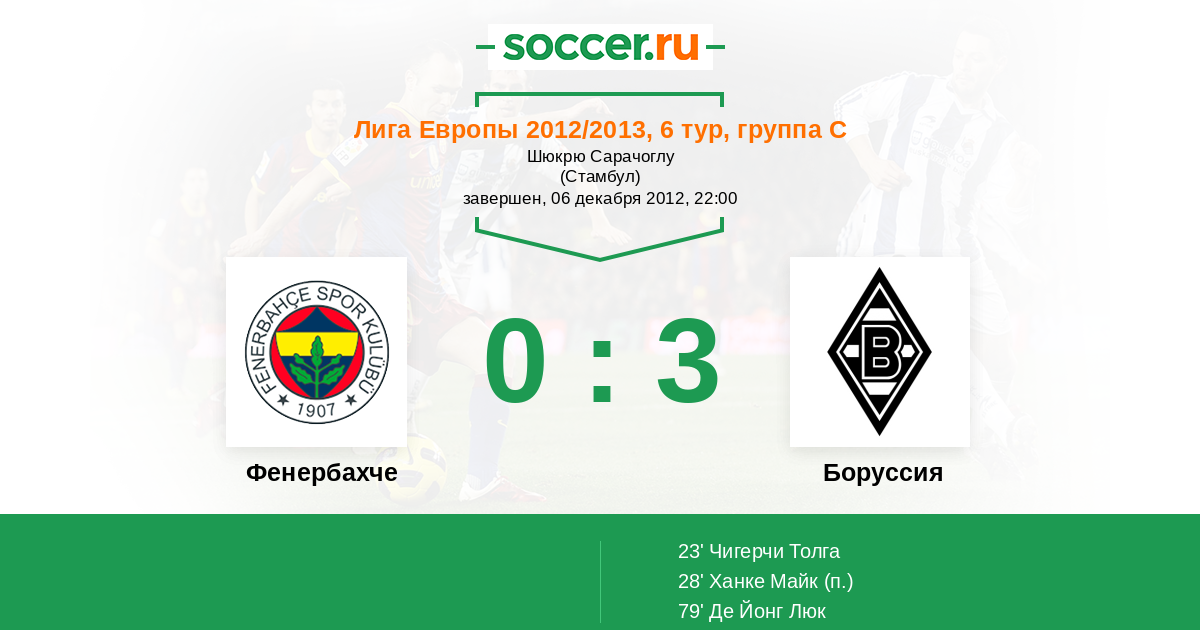 Протокол матча Фенербахче против Боруссия