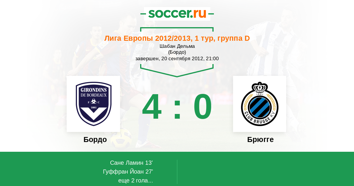 Протокол матча Бордо против Брюгге