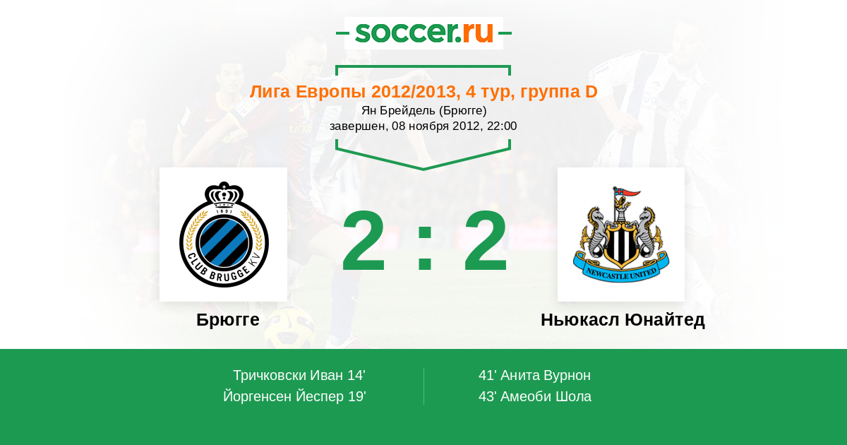 Протокол матча Брюгге против Ньюкасл Юнайтед