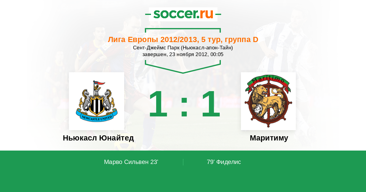Протокол матча Ньюкасл Юнайтед против Маритиму