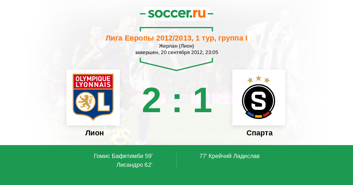 Протокол матча Лион против Спарта