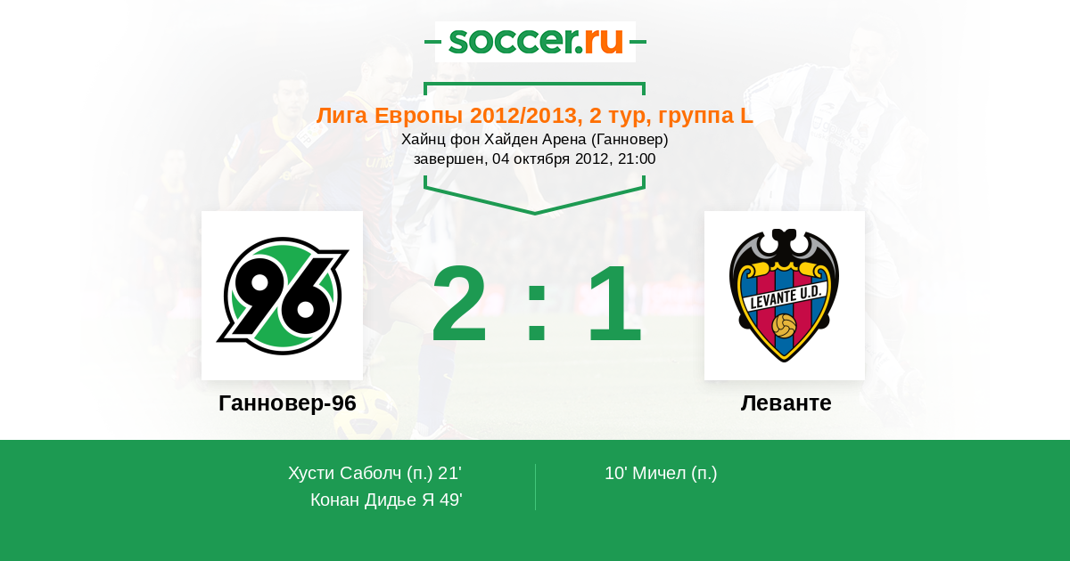 Протокол матча Ганновер-96 против Леванте