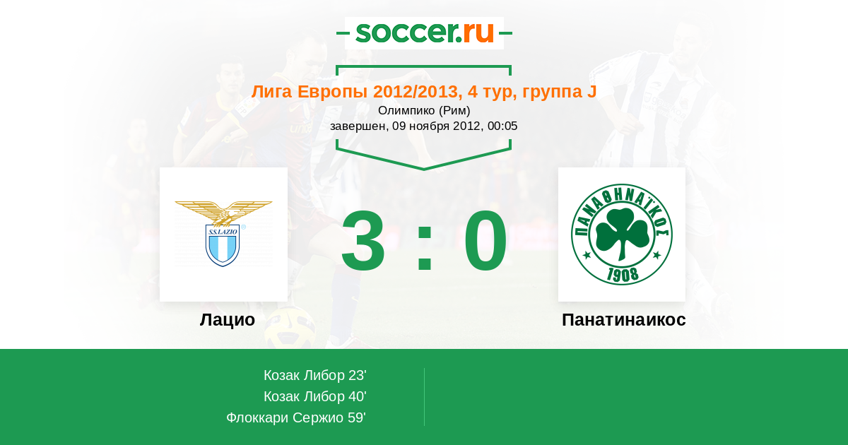 Протокол матча Лацио против Панатинаикос