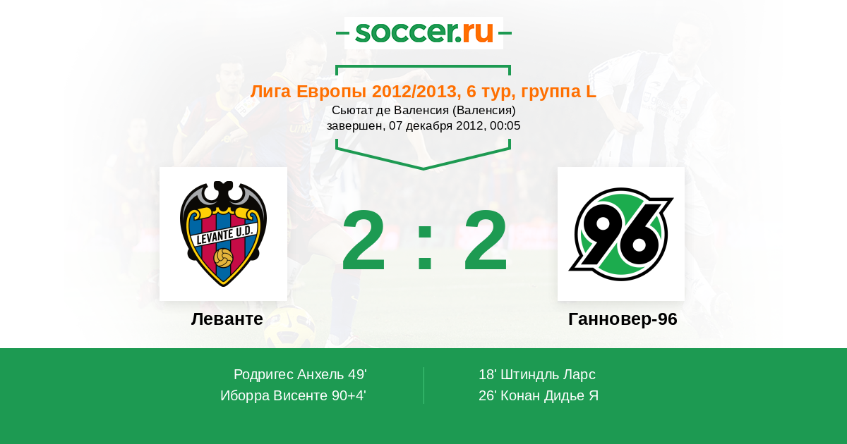 Протокол матча Леванте против Ганновер-96