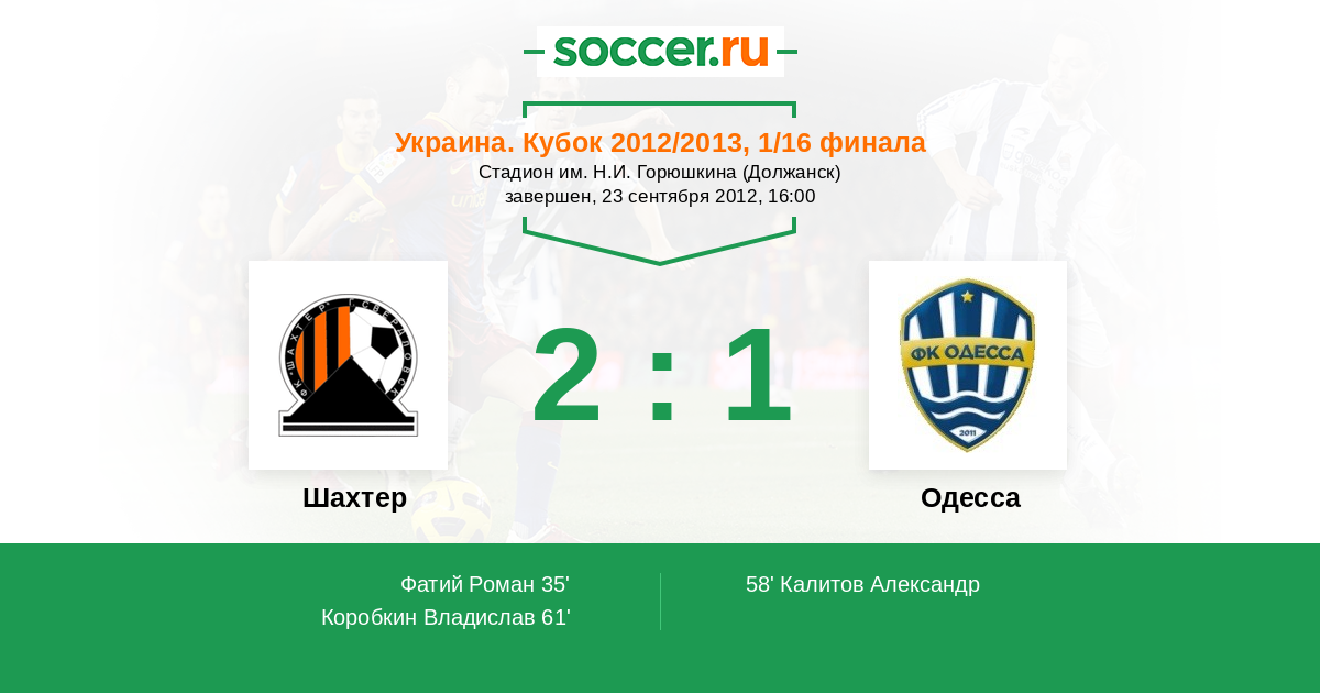 Протокол матча Шахтер против Одесса