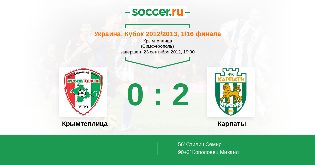 Протокол матча Крымтеплица против Карпаты