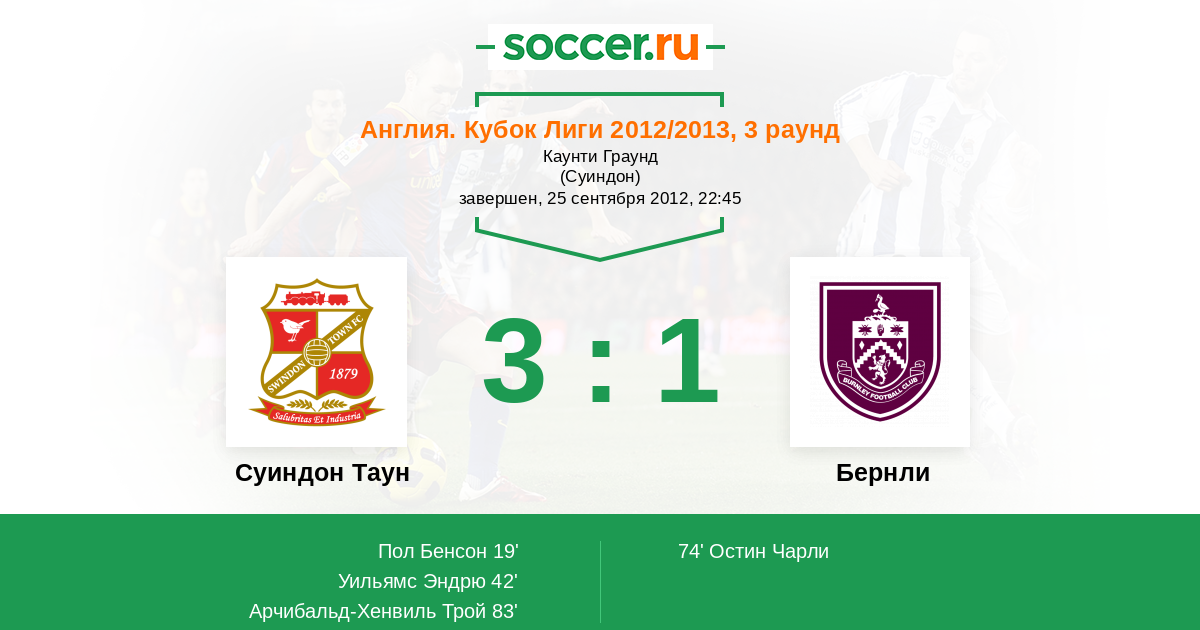 Протокол матча Суиндон Таун против Бернли