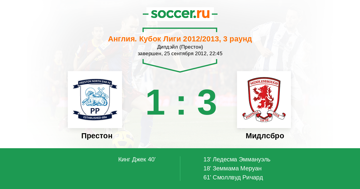 Протокол матча Престон против Мидлсбро
