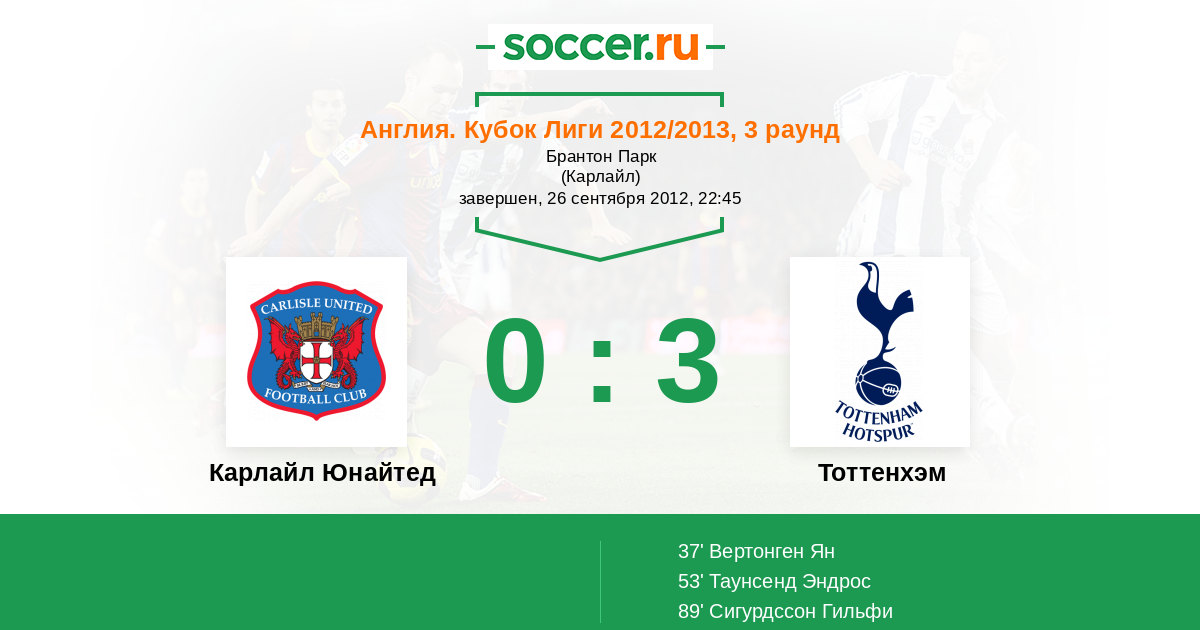 Протокол матча Карлайл Юнайтед против Тоттенхэм