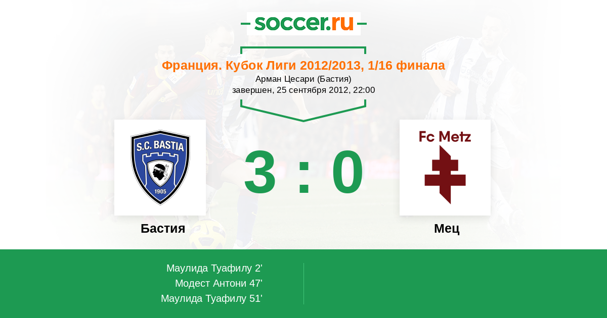 Протокол матча Бастия против Мец