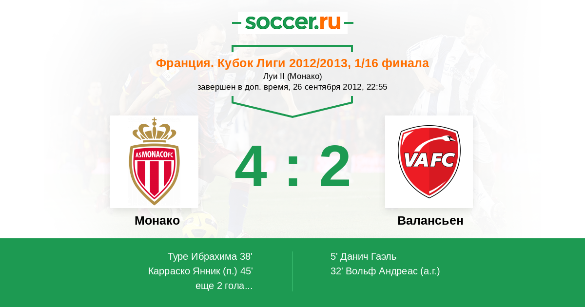 Протокол матча Монако против Валансьен