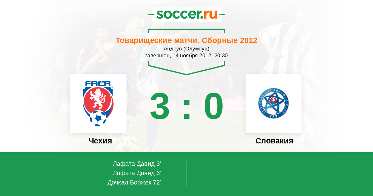 Протокол матча Чехия против Словакия