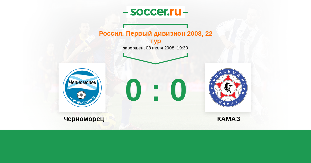Россия. Первая лига 27.10.2008 КАМАЗ Логотип футбольный клуб КАМАЗ (Набережные Челны) 2:2 Логотип футбольный клуб Черноморец (Новороссийск) Черноморец