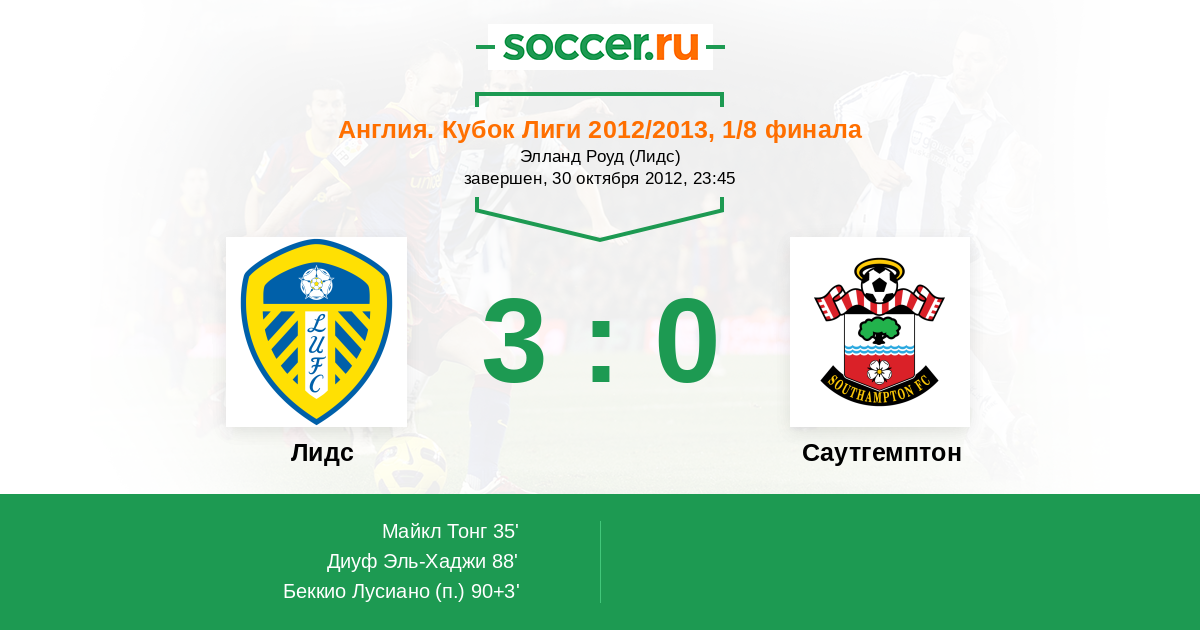 Протокол матча Лидс против Саутгемптон