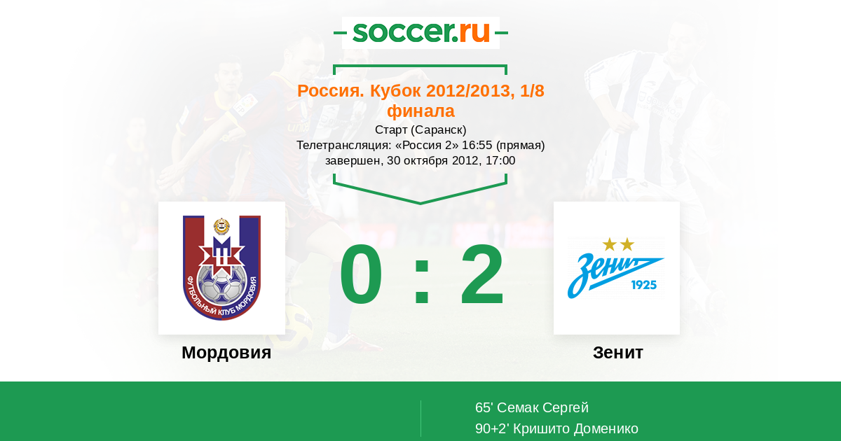 Протокол матча Мордовия против Зенит
