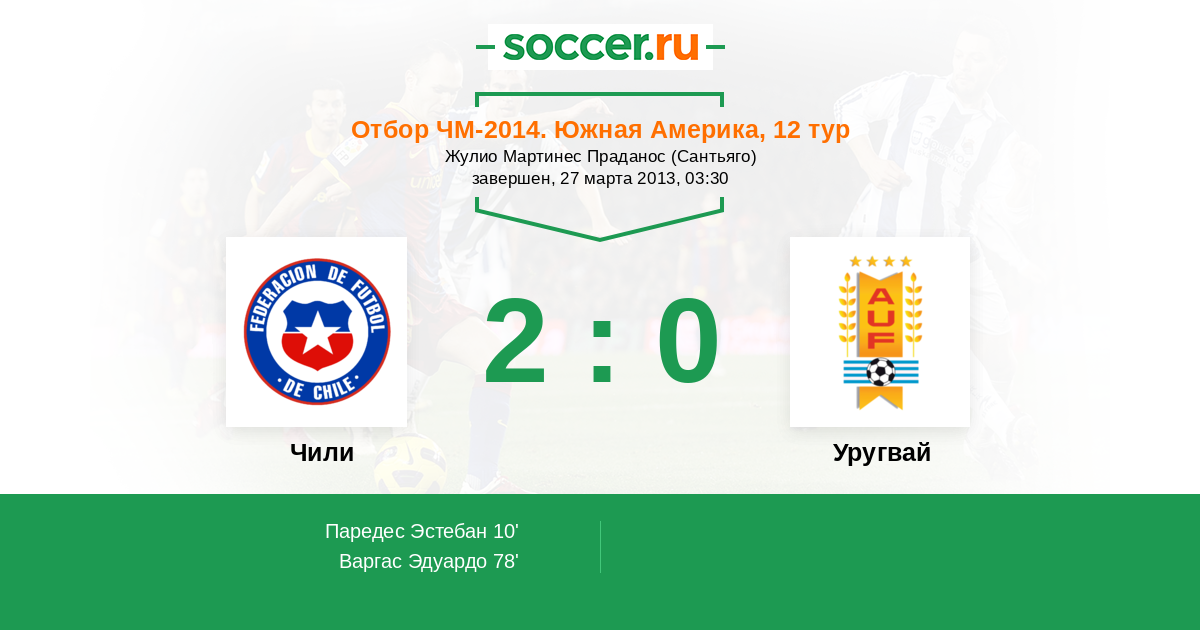 Протокол матча Чили против Уругвай