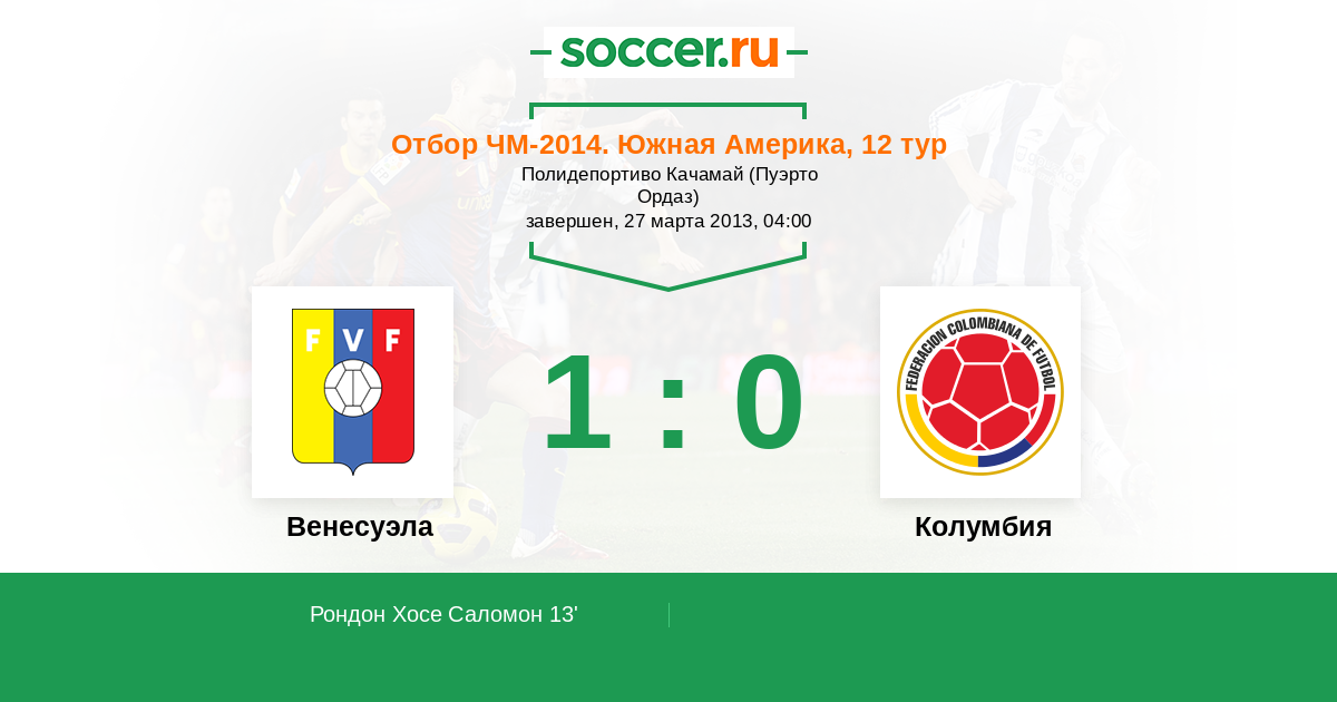 13' (1:0) Рондон Хосе Саломон