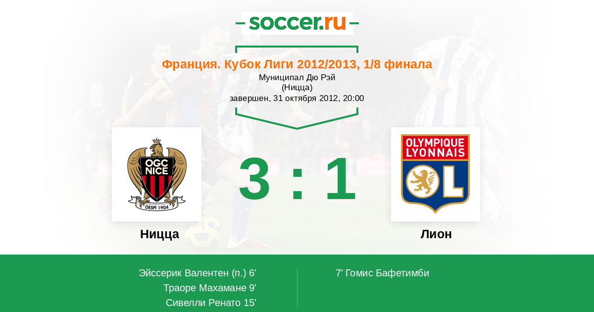 Протокол матча Ницца против Лион