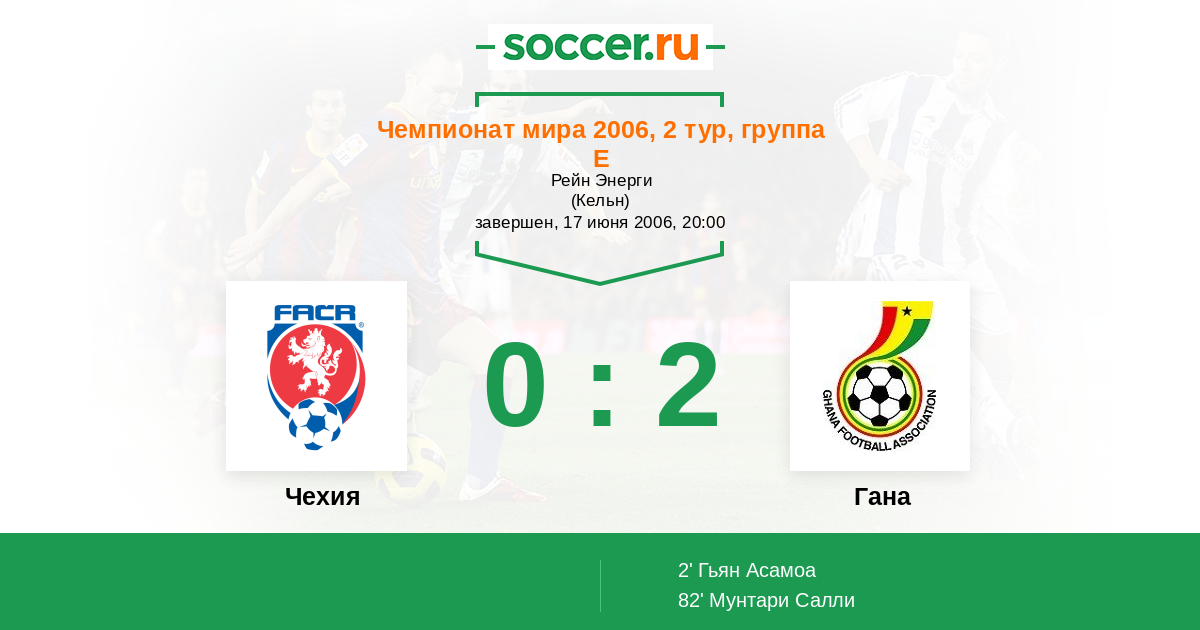 Протокол матча Чехия против Гана