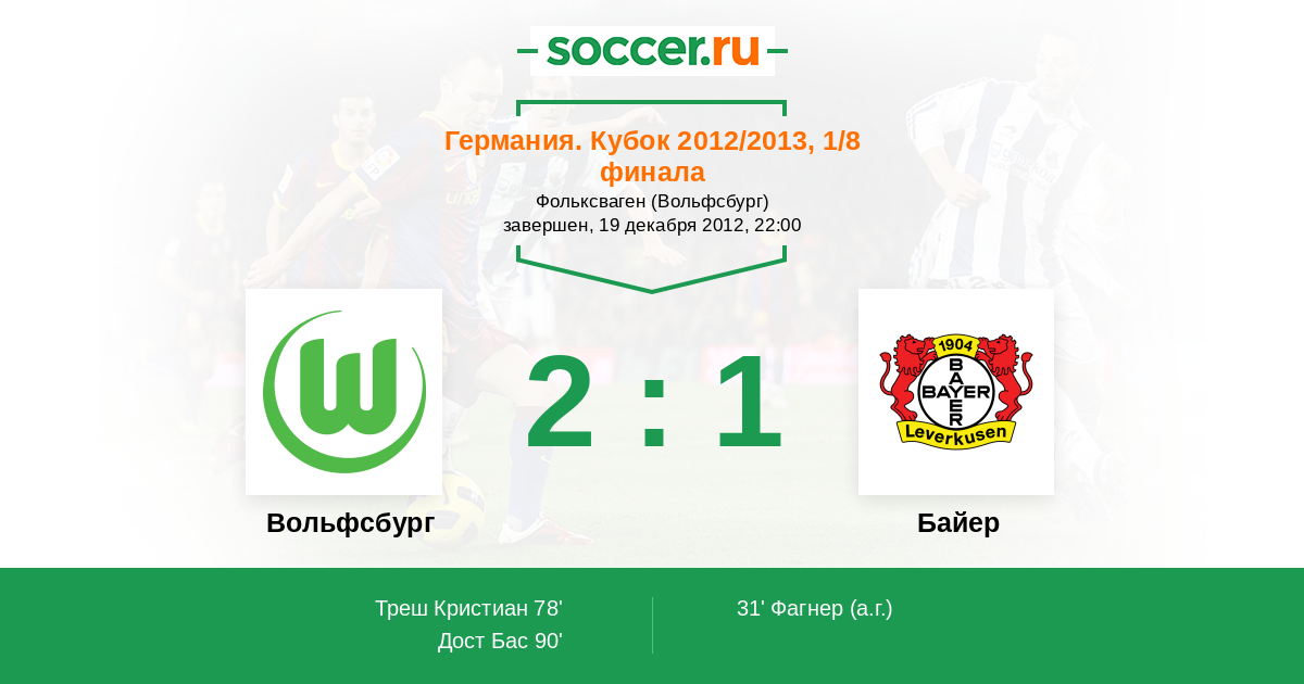 Протокол матча Вольфсбург против Байер
