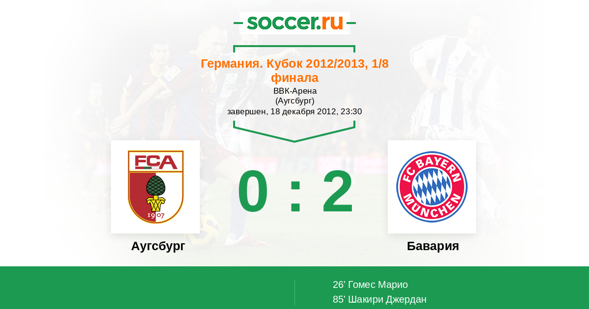 26' (0:1) Гомес Марио (33) (Рибери Франк (7))