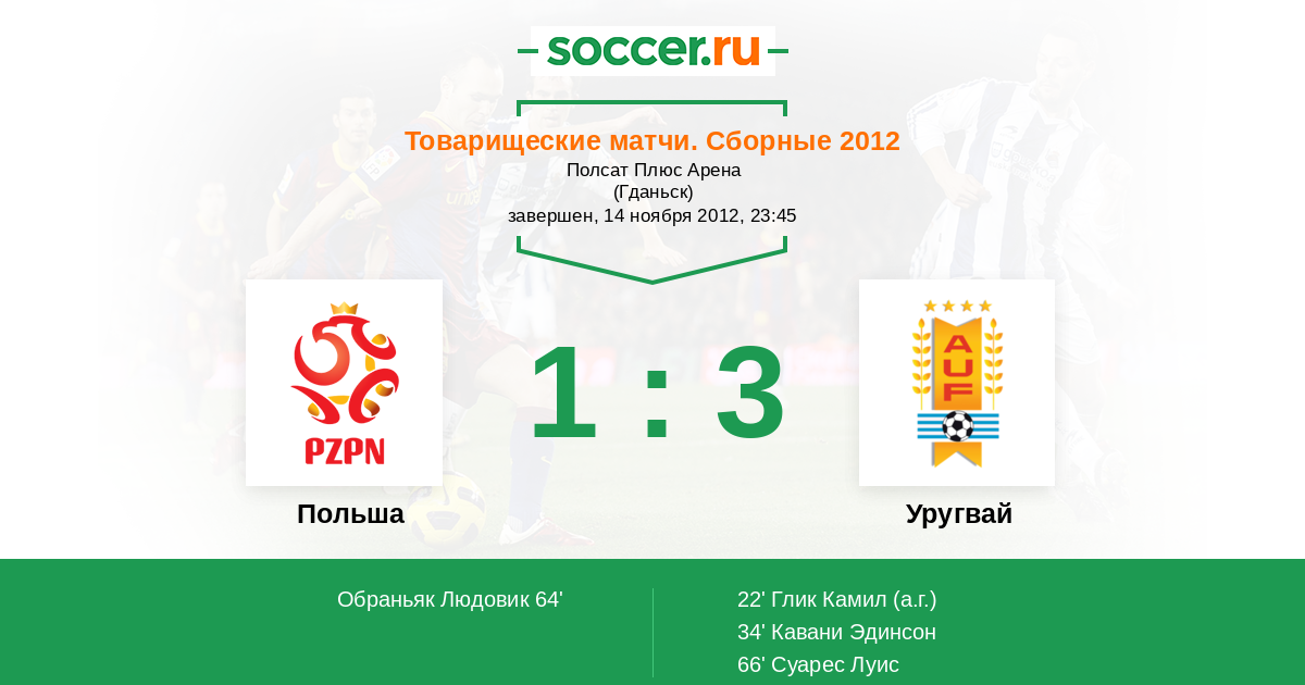 Протокол матча Польша против Уругвай