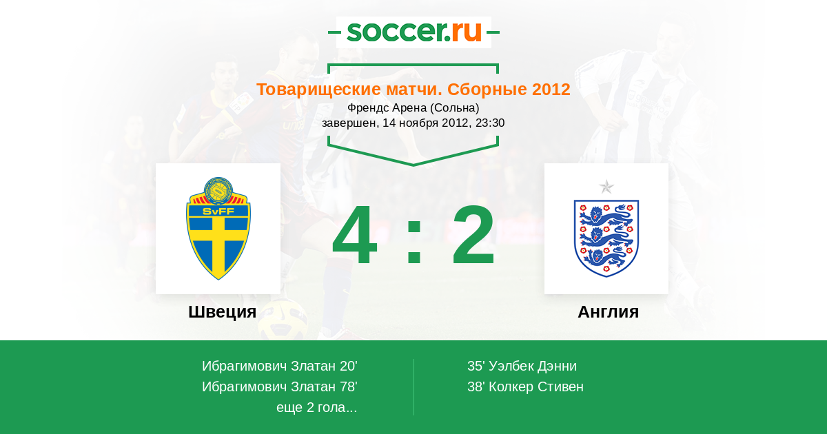 Протокол матча Швеция против Англия