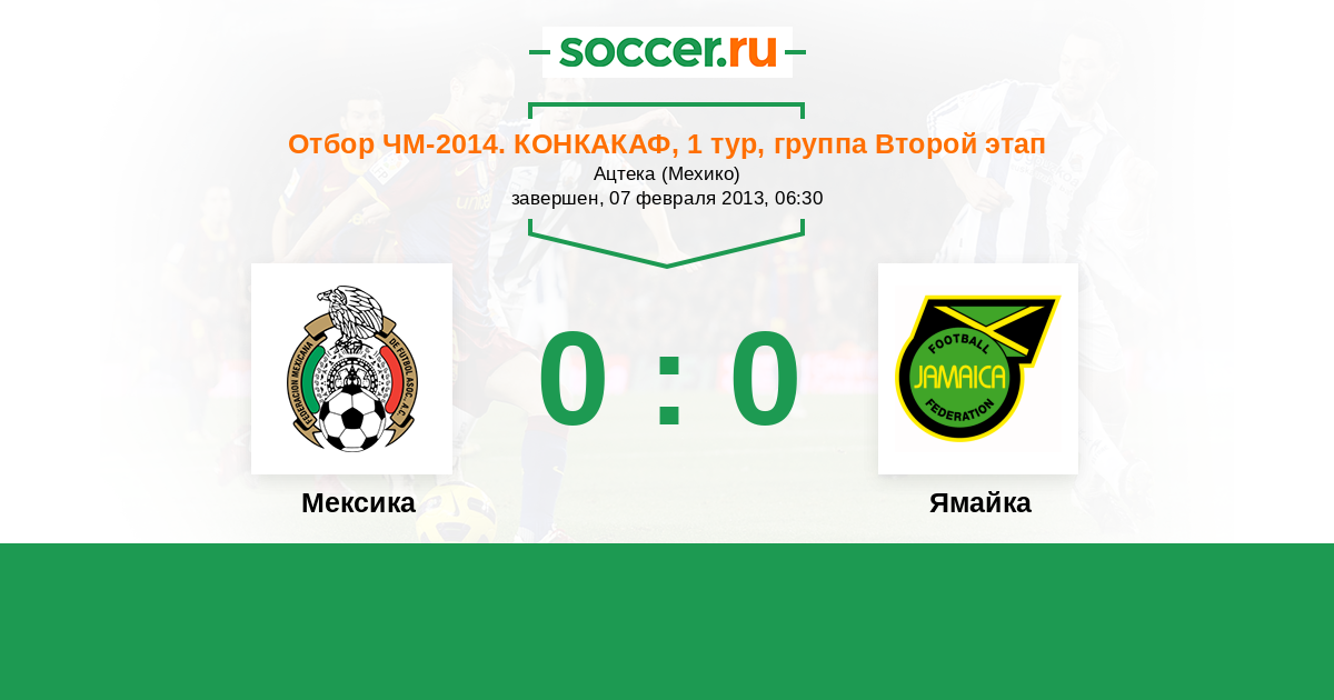Отбор ЧМ. КОНКАКАФ 05.06.2013 Ямайка Логотип Ямайка 0:1 Логотип Мексика Мексика