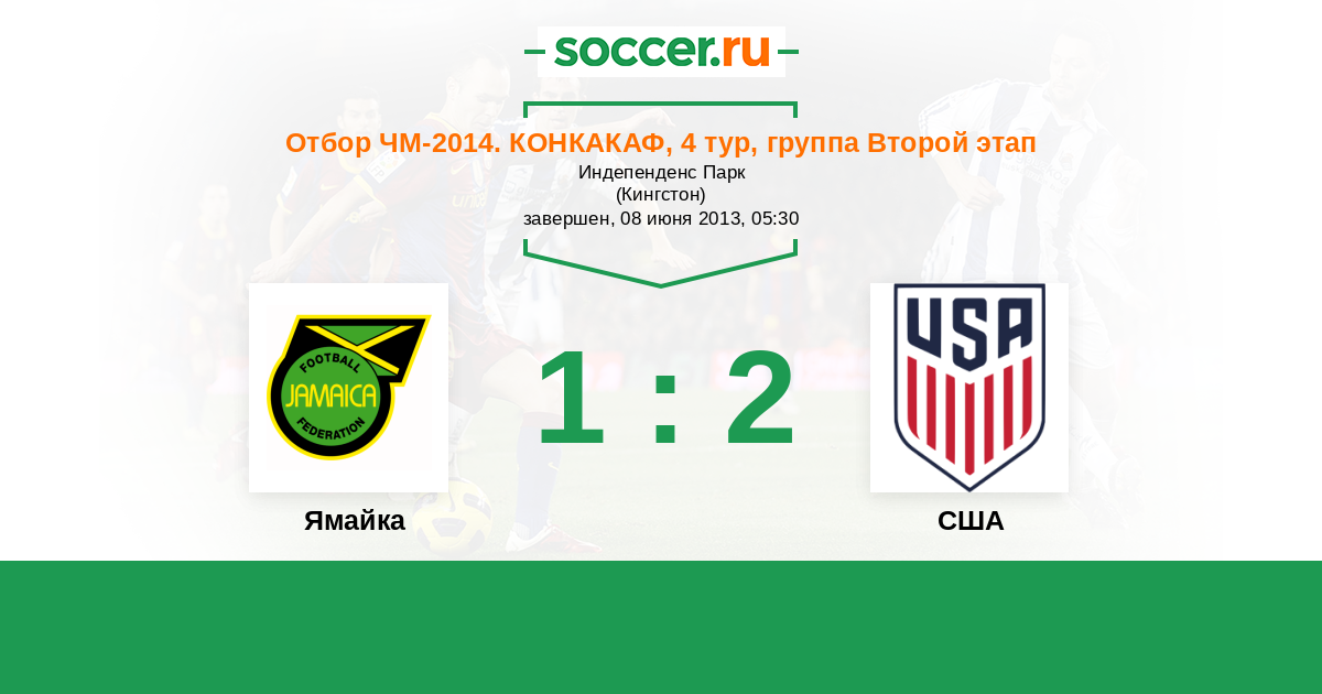 Отбор ЧМ. КОНКАКАФ 08.09.2012 Ямайка Логотип Ямайка 2:1 Логотип США США