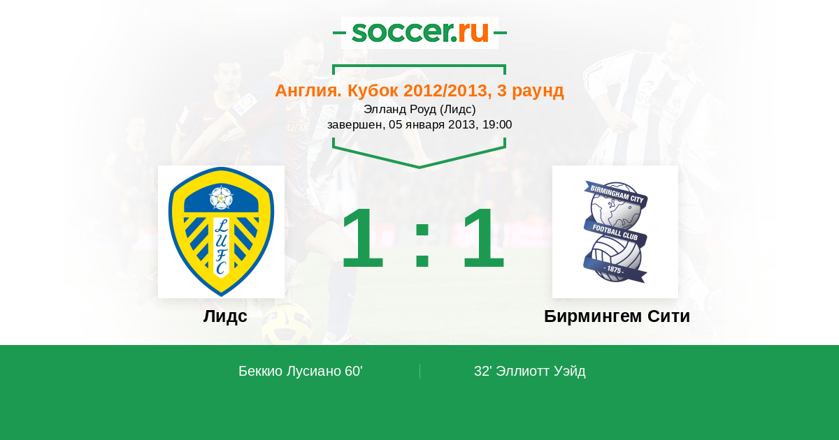 Протокол матча Лидс против Бирмингем Сити