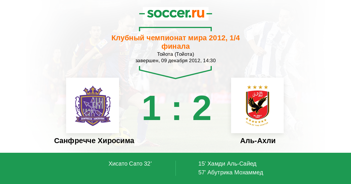 Протокол матча Санфречче Хиросима против Аль-Ахли