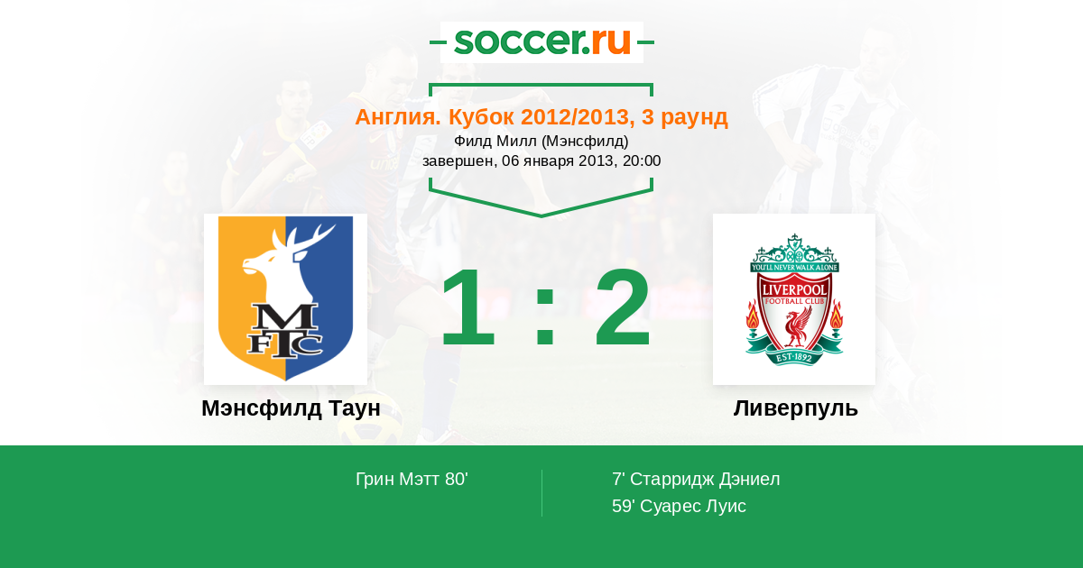 Протокол матча Мэнсфилд Таун против Ливерпуль