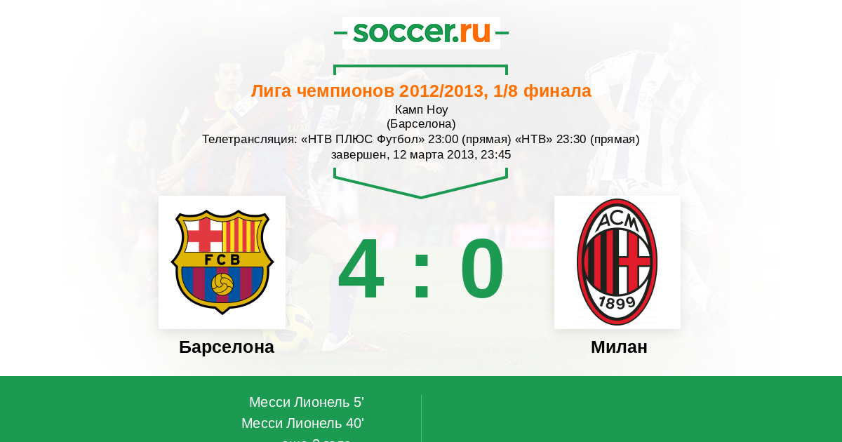 Протокол матча Барселона против Милан