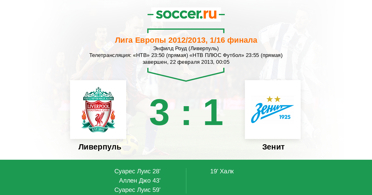 Протокол матча Ливерпуль против Зенит