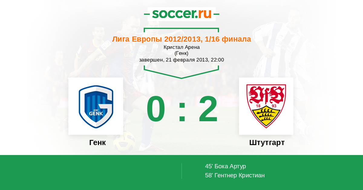 Протокол матча Генк против Штутгарт