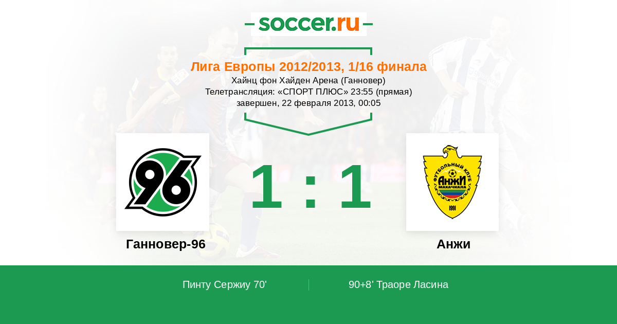 Протокол матча Ганновер-96 против Анжи